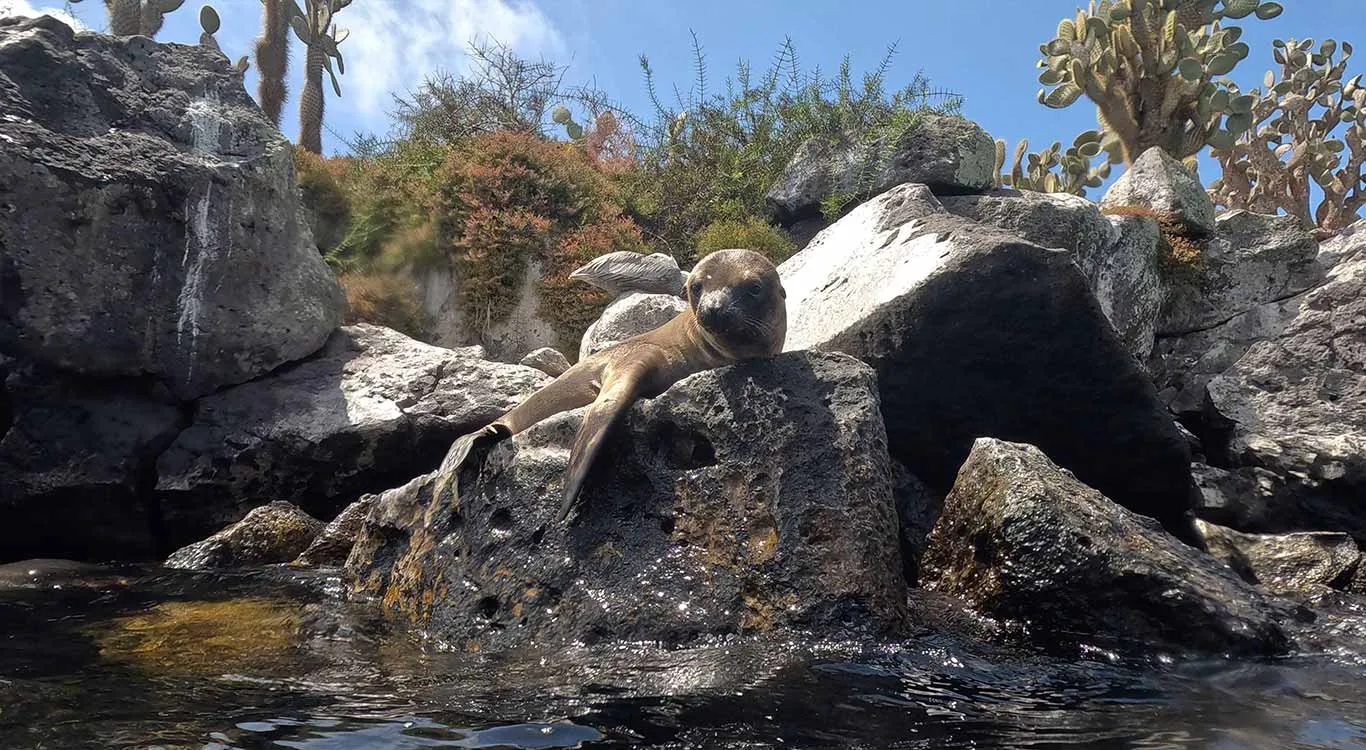 Santa Fe is famous for its resident sea lion colony, and the snorkeling here is often energetic and playful. Many travelers consider this one of the most fun water experiences in the Galapagos.